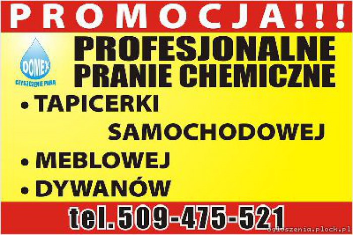 Pranie dywanów, tapicerki meblowej i samochodowej itp. 26.06.2014Profesjonalne pranie chemiczne: - tapicerki samochodowej. - tapicerki meblowej. - dywanów, wykładzin. Usługa w domu klienta.