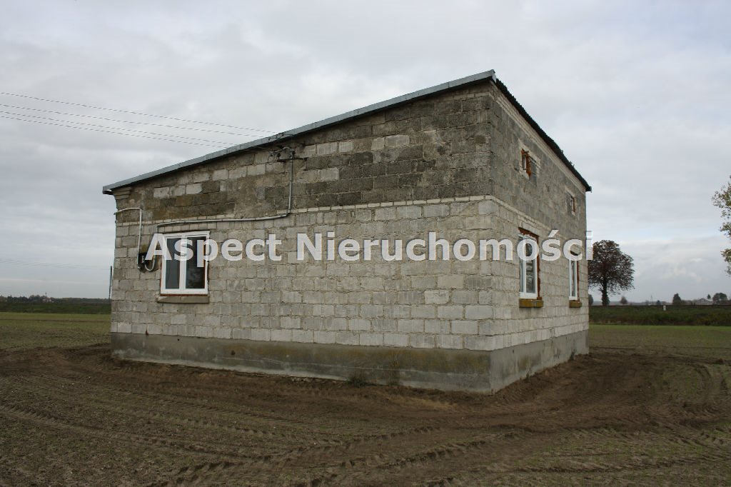 Prąd doprowadzony do budynku, woda z sieci około 100m, okna PCV, dach kryty eternitem. Dom w stanie surowym zamkniętym.