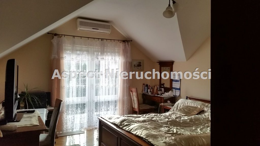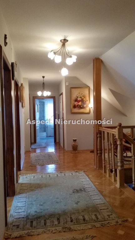 Dębowe, ażurowe schody prowadzą na piętro, gdzie znajdują się trzy przestronne sypialnie (jedna z wyjściem na balkon), duża łazienka z prysznicem i wanną z hydromasażem, oddzielne wc oraz duża garderoba. Dodatkowa przestrzeń na tym poziomie to niemal 50-cio metrowe pomieszczenie pełniące funkcję m.in. bawialni dla dzieci oraz otwarta antresola.