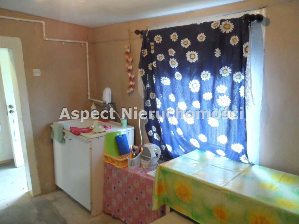 Drewniany dom o powierzchni 60 m 2 składa się z dwóch pokoi, kuchni i przedpokoju. Dach kryty blachą, woda doprowadzona do domu, szambo, ogrzewanie centralne z kuchni (westfalka).
