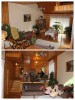 Piętro: duży salon z aneksem kuchennym (aneks kuchenny obecnie wygospodarowany z części salonu z możliwością bezproblemowego przerobienia na duży pokój), łazienka z wanną, pokój gościnny z widokiem na most i rzekę.