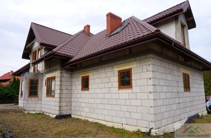 Dom budowany dla siebie, rozpoczęcie budowy nastąpiło 3 kwartale 2010r, wykonany z bardzo dobrej jakości materiałów, (aktualny stan zaawansowania robót - wykonano ściany zewnętrzne z pustaka, wylano stropy, wykonano więźbę dachową położono blachodachówkę, kominy, schody wewnętrzne, doprowadzono wodę do budynku , położono tynki wewnętrzne oraz instalację elektryczną). Dom ma już wstawione okna, drzwi garażowe. Została rozprowadzona instalacja elektryczna.
