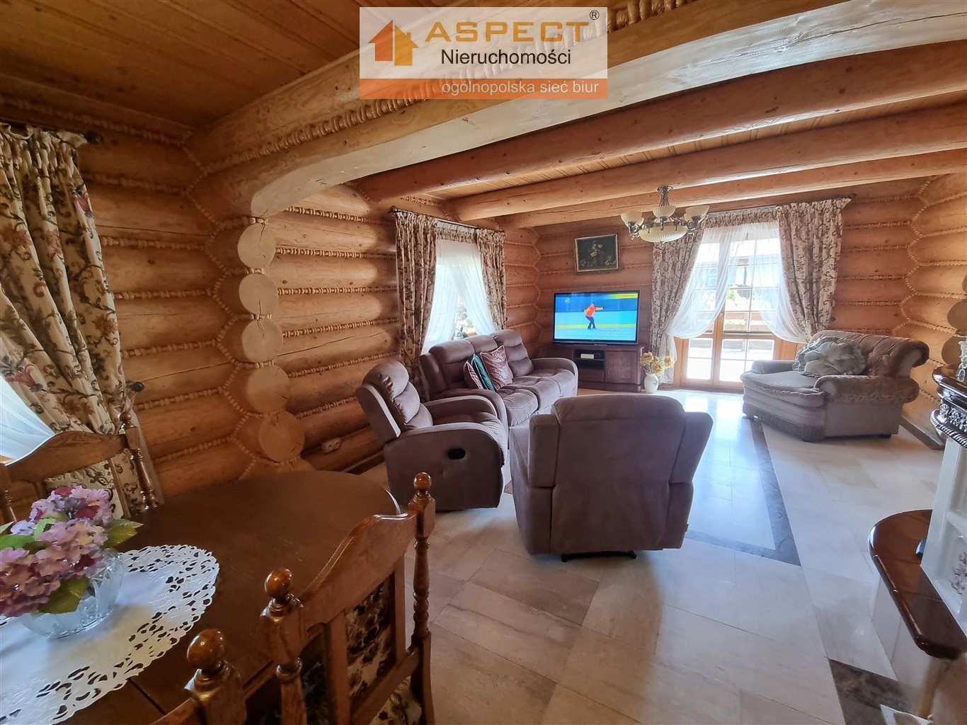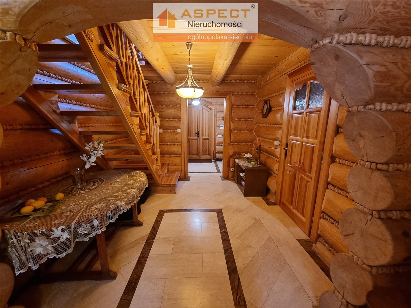 Przedmiotem sprzedaży jest elegancki dom z bali w stylu góralskim. Budynek z 2009 roku, budowany w wysokiej klasy materiałów. Na powierzchnię 163 m2 składają się dwa poziomy: