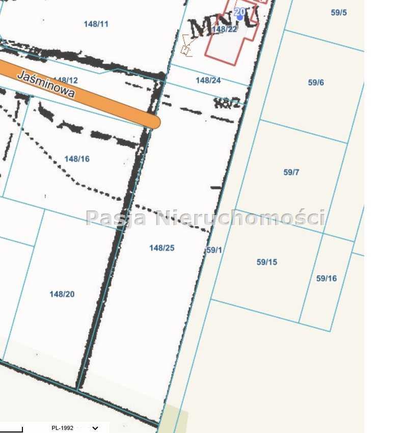 Działka numer ewidencyjny 148/25 położona w rejonie ulicy Jaśminowej